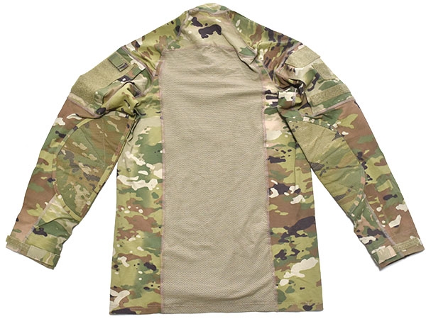 米軍実物、陸軍で使用されている新型のOCPカラー(スコーピオン)のMASSIF ACS Type IIコンバットシャツです。前モデルと似ていますがセンターにジッパーが付いており、よりスムーズに着脱が可能となっています。両肩にベルクロの付いたポケットが2つ、袖に小さなポケットが1つ付いています。伸縮性・難燃性が高く、プレートキャリアやボディアーマーを着用した際に蒸れを軽減できるよう通気性・乾燥性に優れた生地を使用しています。肩にIRが付いています。