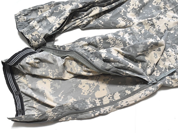 米軍実物、ECWCS (Extreme Cold Weather Clothing System) GEN3 LEVEL5、ACUカラーのソフトシェルパンツです。ポケットは両サイドと両膝上に計4つ付いています。防寒性が高くBDUの上から着用するよう設計されています。