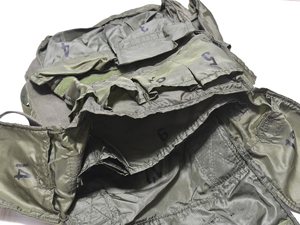 米軍実物、ODカラーのメディカルパックです。メインポケットは仕切りがあり、合計12個のポケットが付いています。