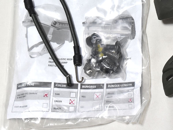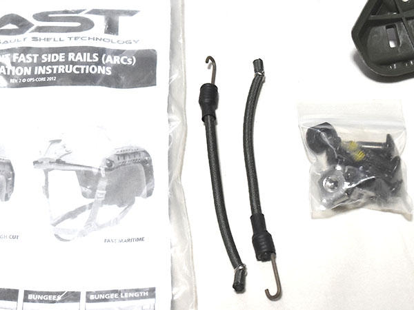 米軍実物、OPS-CORE製、ハイカット/カーボンヘルメット用のサイドレール左右セットです。グリーンカラー。バンジーコート、ボルトとナット付き。
