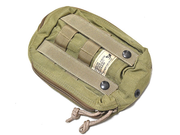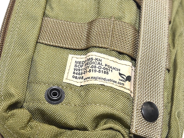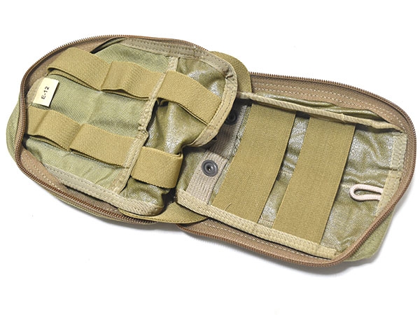 米軍実物、EAGLE製、特殊部隊で使用されているカーキカラーのメディカルポーチです。中にエラスティックバンドが付いており通常のIFAKを収納できる大きさです。