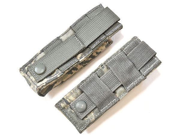 米軍実物、空軍放出のDFLCSキットに含まれるABUカラーのピストルマグポーチ2個セットです。プラップが付いているのでマガジンの落下を防ぐことが出来ます。画像の様にベレッタやグロック17マガジンなどピストルマガジン1本収納可能です。