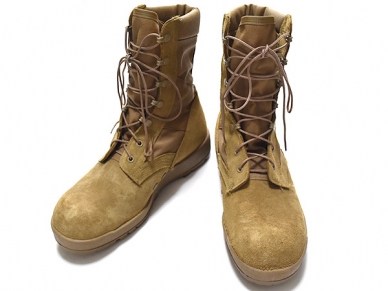 米軍実物、McRae製、陸軍で使用されている官給品のコンバットブーツです。カラーはコヨーテカラーとなり、スコーピオン迷彩に合わせて着用するカラーとなっています。レザーとコーデュラナイロンが使用されており、耐久性・通気性を兼ね備えたブーツです。スチールは入っていません。