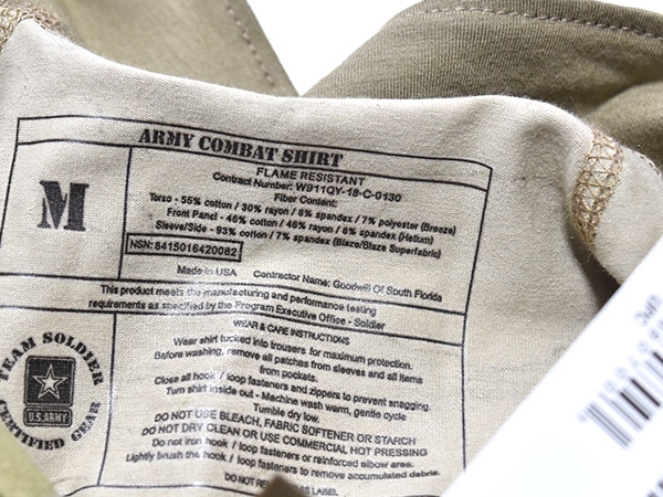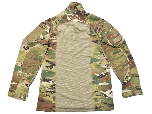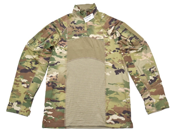 米軍実物、陸軍で使用されている新型のスコーピオンW2カラーのMASSIF ACS Type IIコンバットシャツです。前モデルと似ていますがセンターにジッパーが付いており、よりスムーズに着脱が可能となっています。両肩にベルクロの付いたポケットが2つ、袖に小さなポケットが1つ付いています。伸縮性・難燃性が高く、プレートキャリアやボディアーマーを着用した際に蒸れを軽減できるよう通気性・乾燥性に優れた生地を使用しています。肩にIRが付いています。