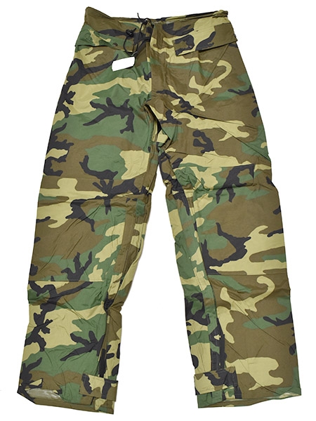 米軍実物、90年代から2000年初期まで全軍で使用されていたウッドランドカラーのレインパンツです。フロントはジッパーとなり裾をジッパーで広げることが出来ます。