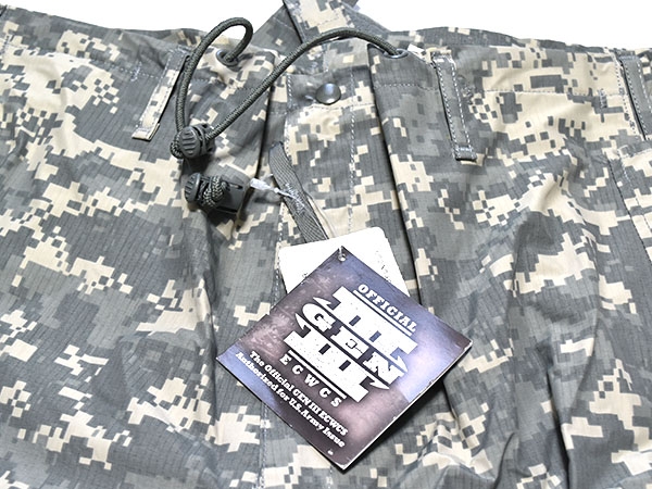 米軍実物、主に陸軍で使用されているECWCS GEN3 ACUカラーのゴアテックスパンツです。防水性の高いGore-Texを使用しており、ウエストはゴムで調節可能、両サイドポケットはインナーにアクセスするために貫通式となります。レイヤリングより防寒性を高めることができ、単体でもレインウェアとして活用いただけます。登山やアウトドア、ツーリングなどの防寒用具・雨具としておすすめ1着です。※ゴアテックスの表記はありませんが、同等の素材が使用されています。