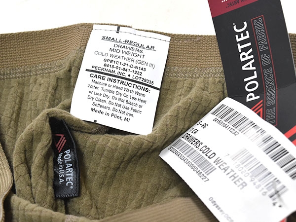 米軍実物、陸軍で使用されている最新ブラウンカラーのLEVEL2コールドウェザーグリッドフリースシャツとパンツのセットです。裏地はワッフルと呼ばれる非常に肌触りが良く、防寒性の高い生地を使用しています。