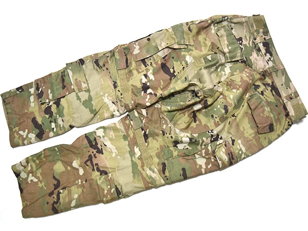 米軍実物、陸軍放出のOCPカラー(スコーピオン)のARMYコンバットパンツです。2012年頃から陸軍特殊部隊にて使用が確認されているCRYEタイプの新型コンバットパンツです。現在ではODAや戦闘部隊のエリート兵士でも使用が見られます。パッドは付属していませんが、CRYE製と同形状のパッドが使用できます。フロントはボタンとなっており、8つのポケットが付いています。希少なアイテムです!