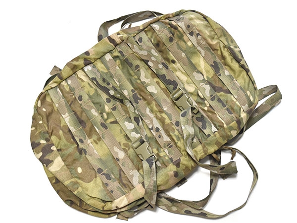 米軍実物、Bulldog Tactical Equipment製、詳細不明のバッグです。大きさは3DAY程度で外側にジッパーポケットが付いています。ストラップは格子状になっているので、背負うというより何かに取り付ける仕組みになっているようです