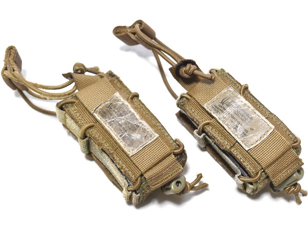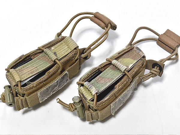 米軍実物、特殊部隊で使用されているTYR Tactical製、マルチカムカラーのCombat Adjustable ピストルマガジンポーチ2個セットです。様々な種類のマガジンを1本収納出来るようバンジーコードで調節可能。