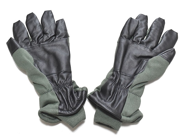 米軍実物、主に航空機搭乗員が使用する、HAU-15Pコールドウェザーグローブです。カラーはセージグリーン系です。レザーを使用した防寒性・耐久性の高いグローブです。