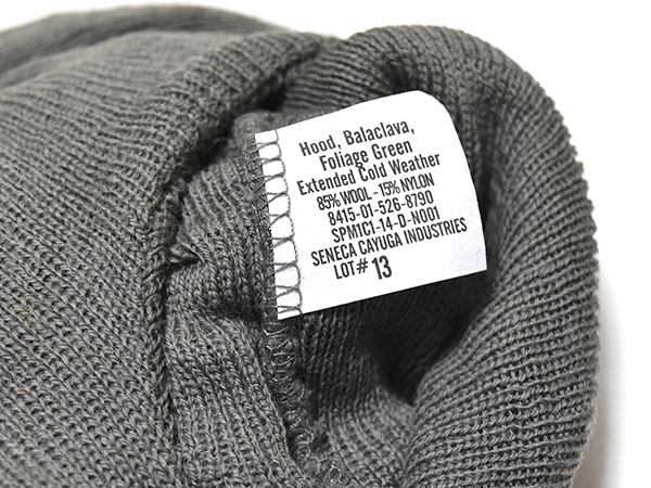 米軍実物、フォリッジカラーのコールドウェザーバラクラバです。WOOL85%、防寒性の高い厚手のタイプです。