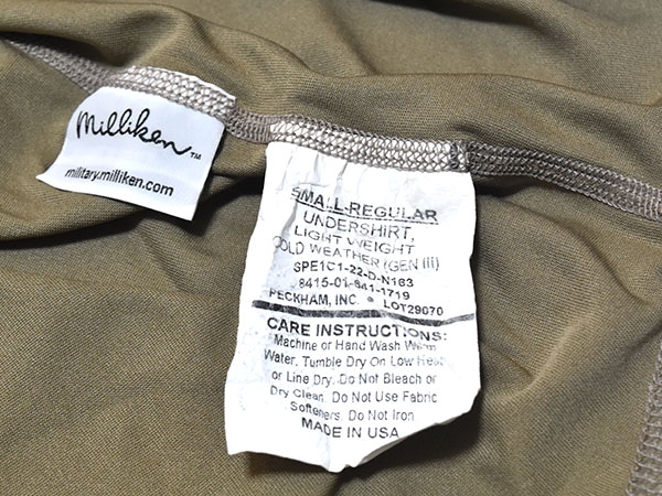米軍実物、新カラーのコヨーテカラーのECWCS(Extreme Cold Weather Clothing System) GEN3 アンダーシャツです。肌着として汗の吸収性・速乾性が高く、温度調整に優れたポリエステル素材を使用しています。冬季にはレイヤリングにより防寒性を高めることが出来ます。