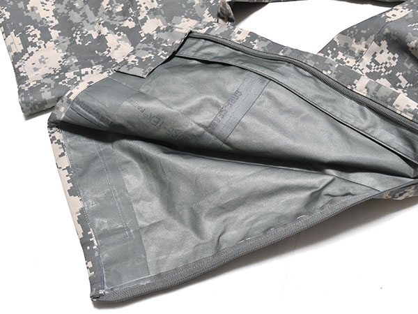 米軍実物、ECWCS (Extreme Cold Weather Clothing System) GEN2のACUカラーのゴアテックスパンツです。防水性の高いGore-Texを使用しており、ウエストはゴムで調節可能、両サイドポケットはインナーにアクセスするために貫通式となります。