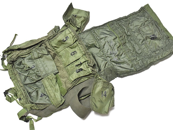 米軍実物、ODカラーのメディカルパックです。メインポケットは仕切りがあり、合計12個のポケットが付いています。