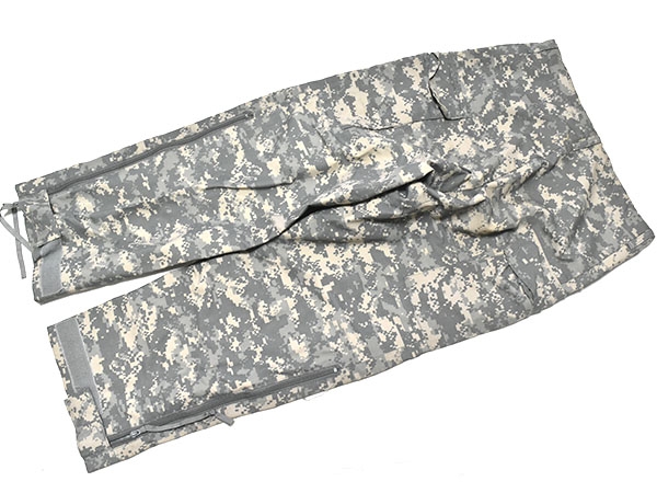 米軍実物、ECWCS (Extreme Cold Weather Clothing System) GEN2のACUカラーのゴアテックスパンツです。防水性の高いGore-Texを使用しており、ウエストはゴムで調節可能、両サイドポケットはインナーにアクセスするために貫通式となります。