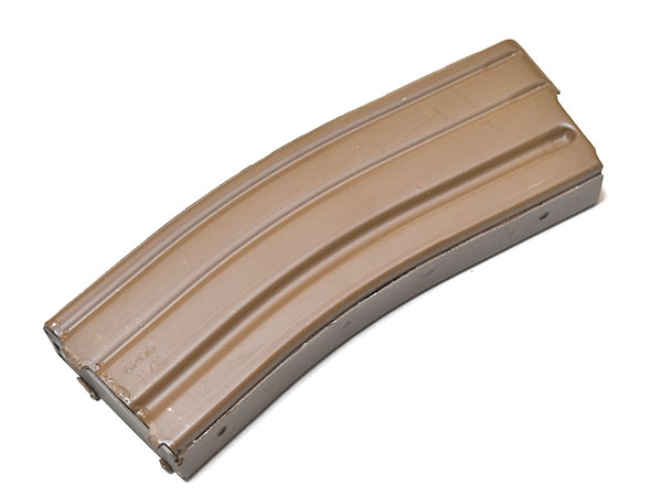 米軍実物、M4/M16用、5.56アルミ製マガジンです。カラーはタン/コヨーテ系となります。